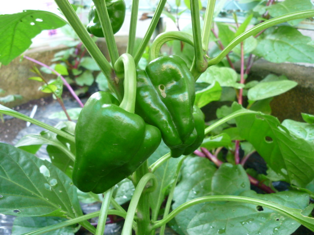 ピーマン ピーマンがなった 2010年7月1日 wakusan コメントをどうぞ 苗が大きくなりすぎてから植えた庭のピーマン。ちょっと確認してみると2つの実。いや写真を採ったら4つの実(笑)だった。良いみたいですね。水耕栽培のほうは駄目です。昨年の水耕栽培も秋に成ってから収穫だったしピーマンは逆に成長が遅れてしまうのかなぁ。って育苗してたのも水耕栽培の肥量だけだったから、ちょっと違うかな。保温して大きくなるまで育てられたのが良かったんだろうな。