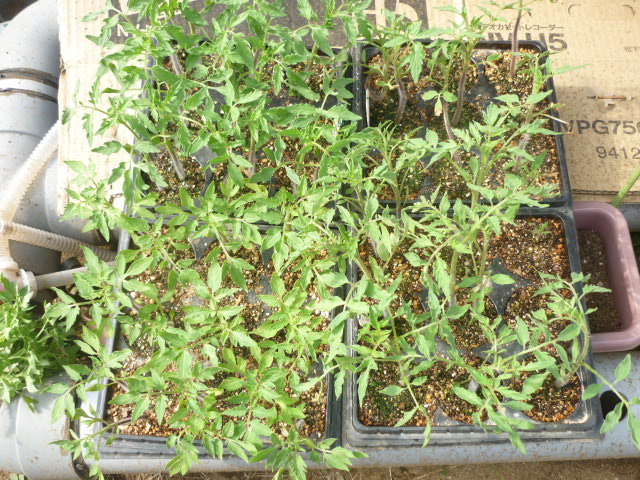 とまと トマトの苗の状況 2011年4月2日 wakusan コメントをどうぞ トマトの苗の状況です。お伝えしている通り、品種によって成長具合が違いますが、それを除けば順調でしょう。今日は、種を蒔きすぎたサンマルツァーノを少々間引きして、早くも脇目を出し始めたパスタを芽かきしました。 あとは植える時期が問題です。どうすっかなぁ。植える場所が無いのです(汗)