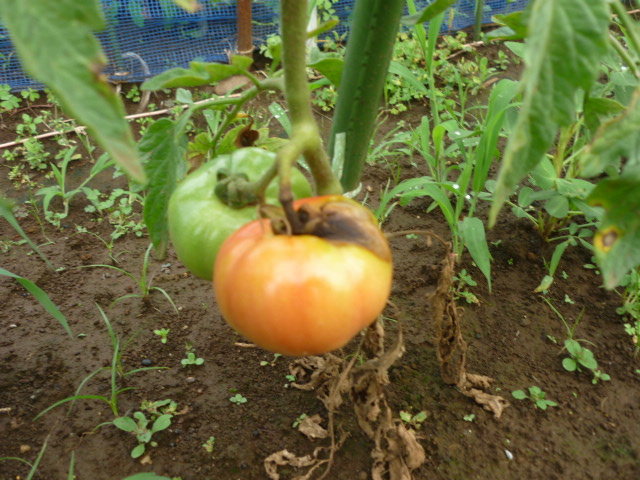 とまと ダメダメなトマト栽培 2011年6月11日 wakusan コメントをどうぞ 借畑のトマトは病気がちでダメです。今日はちょっと色着いたトマトがあって近づいてみたらダメでした。この場所がダメなんでしょうね。それにしても、トマトが少ないとなると、今年の夏は食べ物に困りそうです。